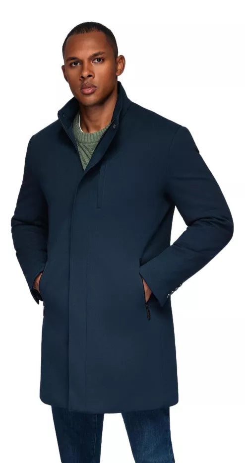 Asymmetrical men's viscose coat will add elegance to men's style. The main motif of this coat is simplicity and class - pleated buttons and side seams, combined with a uniform color scheme, create a stylish whole. The unique design of the coat allows you to combine it with various everyday and outfit compositions. Delicate, soft material with a hint of viscose gives the coat a casual feel and comfort. Men's long coat asymmetrical single-row button fastening with a hidden slit, high collar with a raised collar. There are two functional side pockets, an inner pocket.