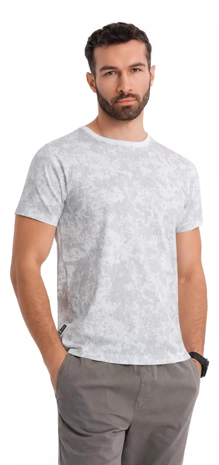 This T-shirt model is a modern version of the classic T-shirt, in which the main role is played by a dynamic pattern covering the entire surface of the material. The regular cut and round neckline are perfect for everyday style. The soft cotton knit fabric ensures complete wearing comfort, while subtle details, such as a small label with the brand logo, emphasize the refined style. This is an offer for men who like simplicity, but at the same time uniqueness.