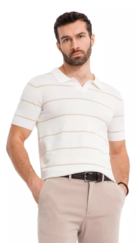 Lovers of subtle elegance will be delighted with the polo shirt with subtle stripes. This is a universal smart casual style offer that will find its place in many interesting stylizations. The advantage of this model is the viscose composition, which makes the shirt light and pleasant to the touch. The logo embroidery on the chest adds chic. Polo collar without buttons. The Kpattern and sleeves are finished with ribbed trim.
