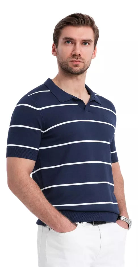Lovers of subtle elegance will be delighted with the polo shirt with subtle stripes. This is a universal smart casual style offer that will find its place in many interesting stylizations. The advantage of this model is the viscose composition, which makes the shirt light and pleasant to the touch. The logo embroidery on the chest adds chic. Polo collar without buttons. The Kpattern and sleeves are finished with ribbed hem.