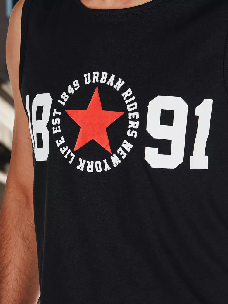 Men's sleeveless T-shirt with a large print on the front and a star motif is a great choice for warmer days. The comfortable cut and breathable material ensure comfort when wearing, and the expressive design attracts attention. The round neckline gives it a classic character. Perfect for spring style.