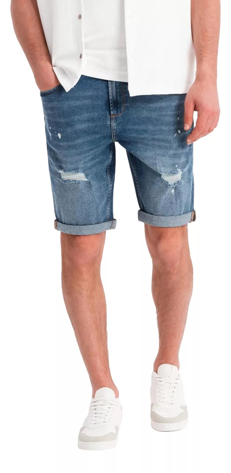These men's denim shorts are the essence of summer casual with a touch of character. The abrasion effect and decorative spots give them a unique urban style. The comfortable cut and stretchy cotton are perfect for everyday wear. This is an offer for men who value modern comfort.