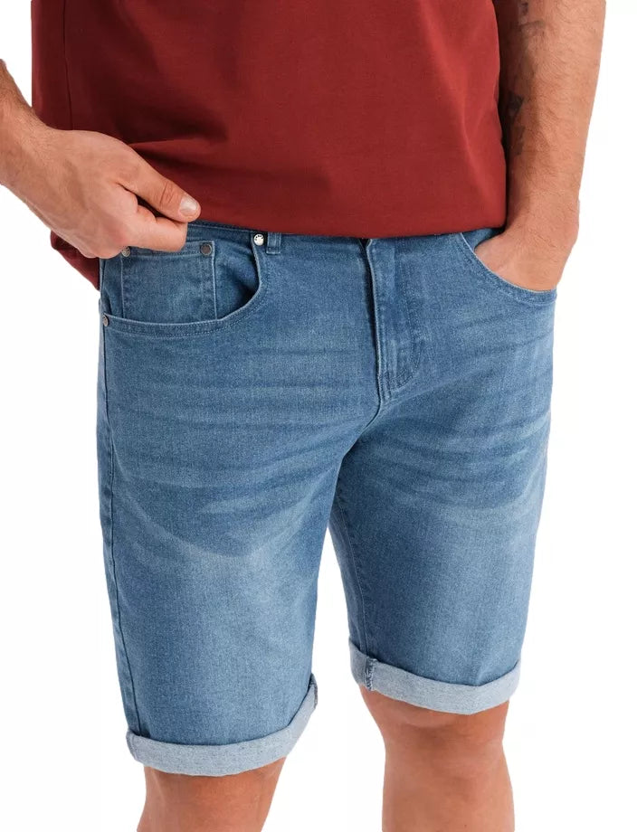 Choose summer style and comfort. Denim shorts with a lightened fabric effect are a wardrobe essential for warm days. Thanks to the stretchy fabric, they adapt to the figure and provide complete freedom of movement. Additional accents, such as a rolled hem or decorative rivets, give the whole thing character. There are pockets on the back and front, plus a small pocket for a watch. Stretchy fabric for comfort and fit