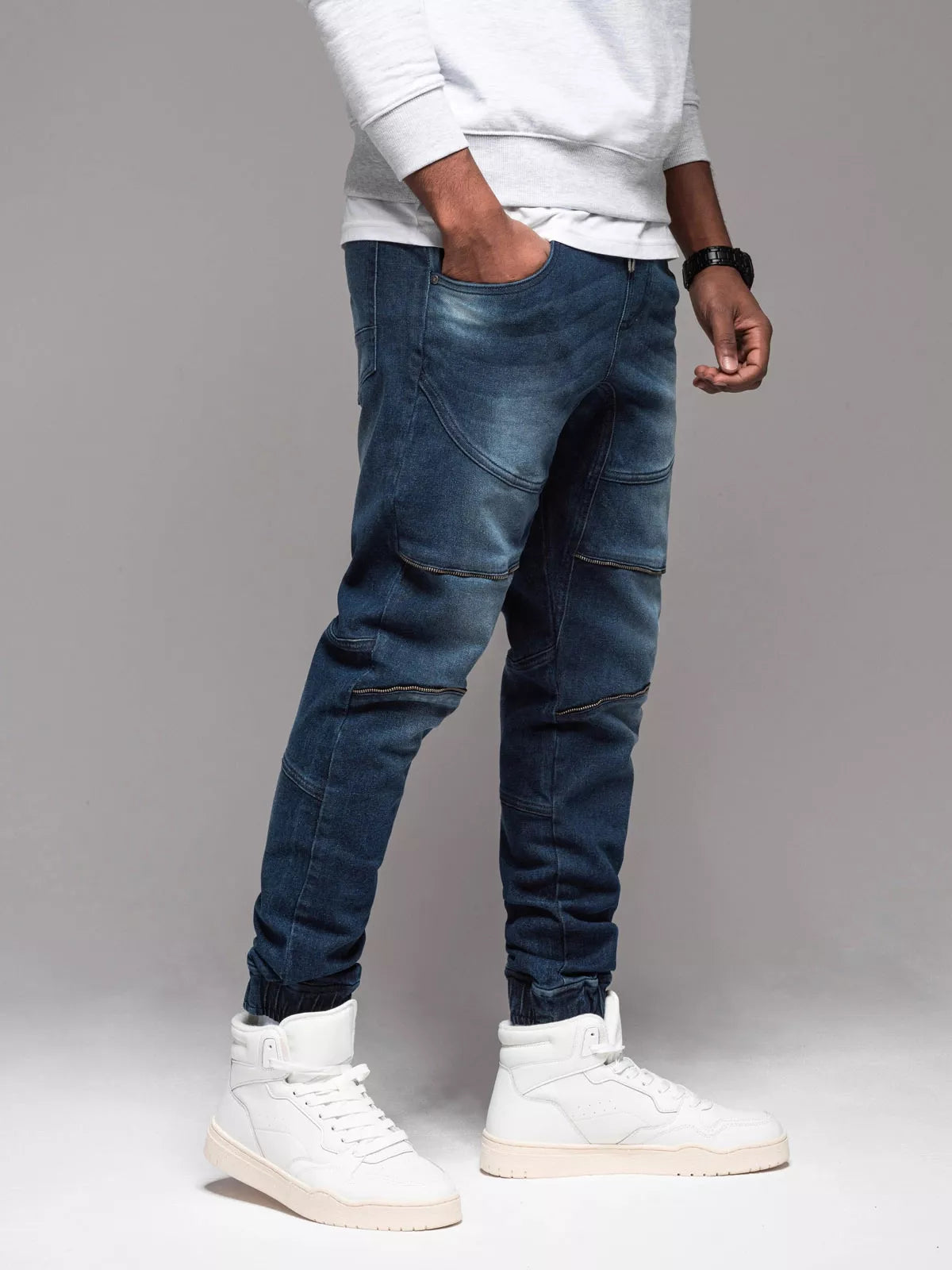 The jeans are made of 98% cotton and 2% elastane, ensuring a comfortable fit and good freedom of movement. The pants have two pockets on the front: two classic pockets, as well as two pockets on the back. The model is 185 cm tall and wears a size M, so they are perfect for men of average height who are looking for stylish and comfortable clothes for everyday wear. These joggers are a great choice for the active man who does not want to give up style.