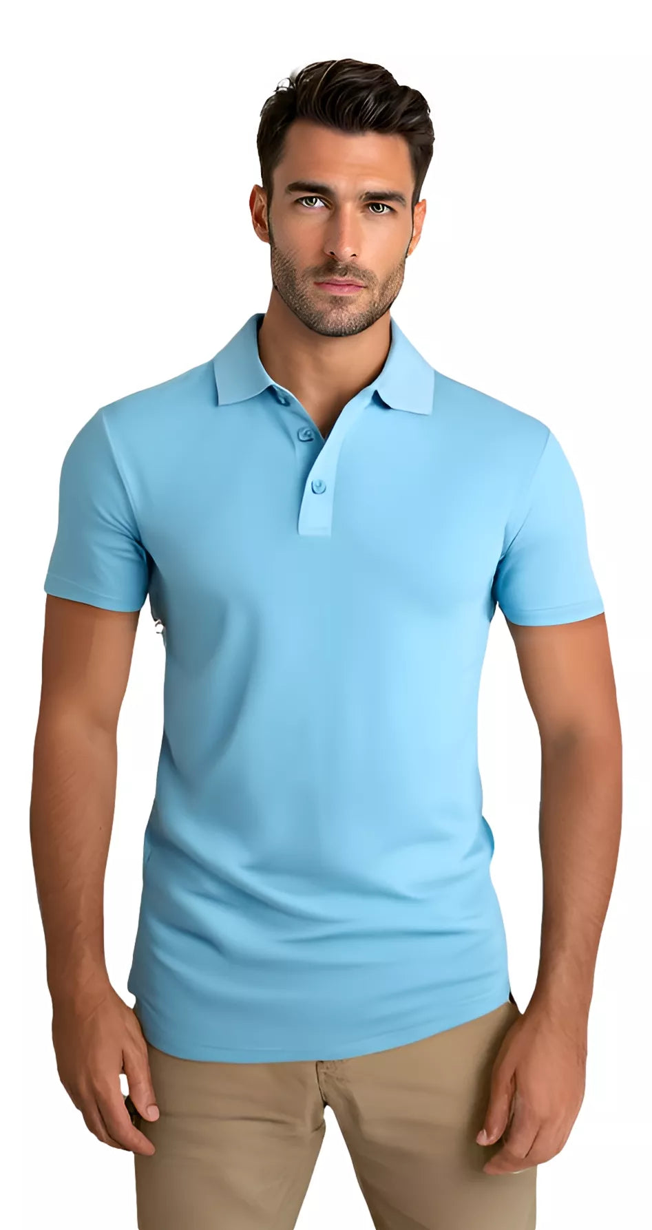 Stylish polo shirt for every fashionable man. The neck closure is adjustable with buttons. These stylish polo shirts will suit not only leisure but also formal style combinations. Material: Cotton 65%, Polyester 35% MODEL (182 CM, 85 KG) IS WEARING SIZE L.