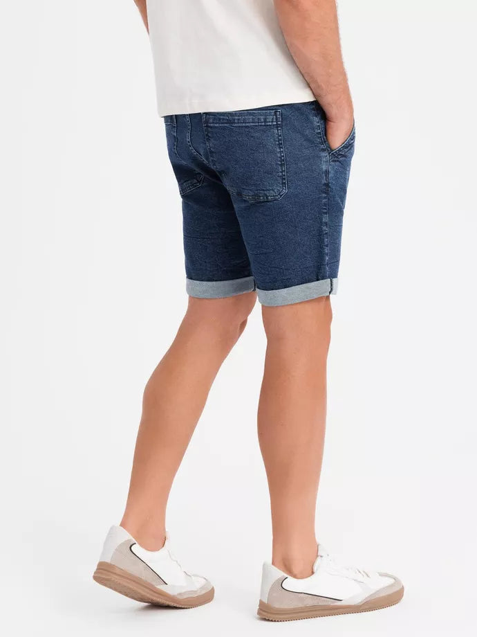 Men's shorts from the Ombre Denim collection are a combination of classic denim and modern leisure. Made from soft, washed fabric with added elastane, they are comfortable to wear and stylish. An elastic waistband with drawstring and a rolled hem add a touch of lightness and street style. Practical pockets, embroidered hems and subtle details create the ideal basis for urban and leisure style on warmer days. Elastic waistband with hem, front and back pockets.