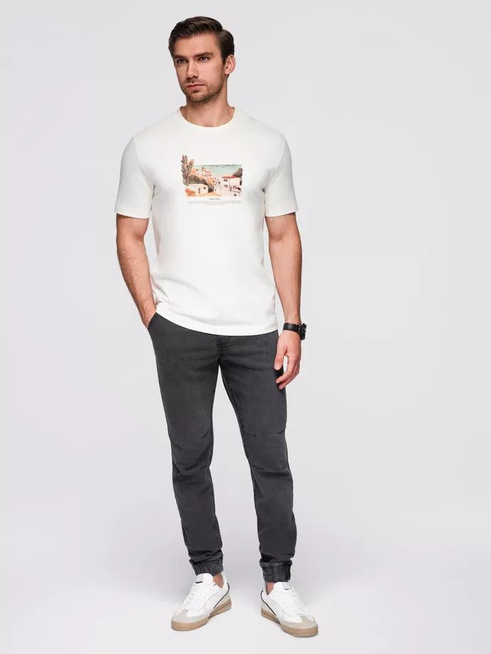 Designed with a modern lifestyle in mind, the pants are a combination of casual, street style and a strong denim character. Thanks to the stretchy fabric and comfortable cut, these jeans guarantee complete freedom of movement and emphasize the silhouette. Light rubbing and detailed finishes create a stylish everyday look that is perfect for both city and weekend leisure. Jogger style pants, elastic at the bottom of the pants. Drawstring waistband with logo that emphasizes the street style. Two front pockets, two back pockets.