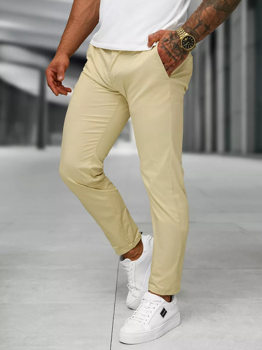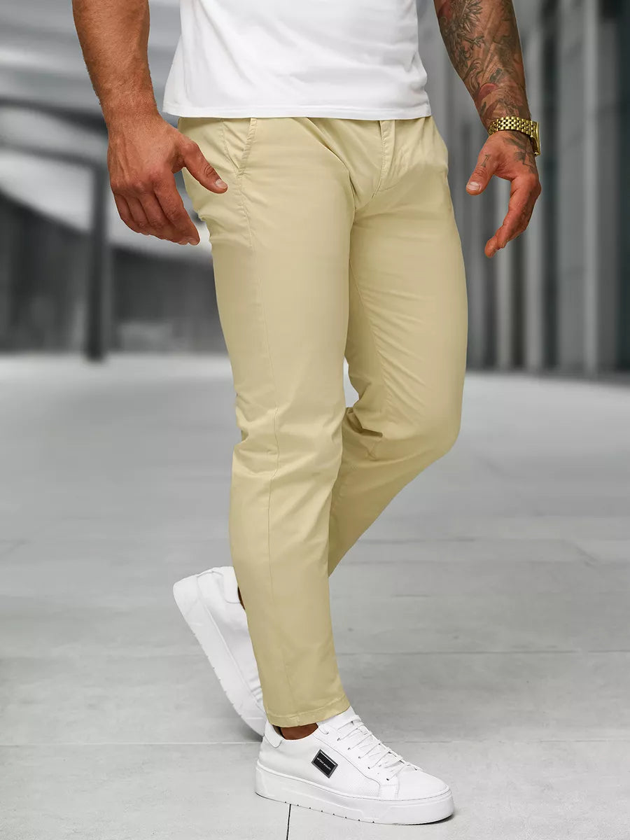 Stylish men's chino pants are made of high-quality material, these pants ensure comfort and versatility. Perfect for both casual wear and a more elegant look, combined with sneakers or classic accessories.