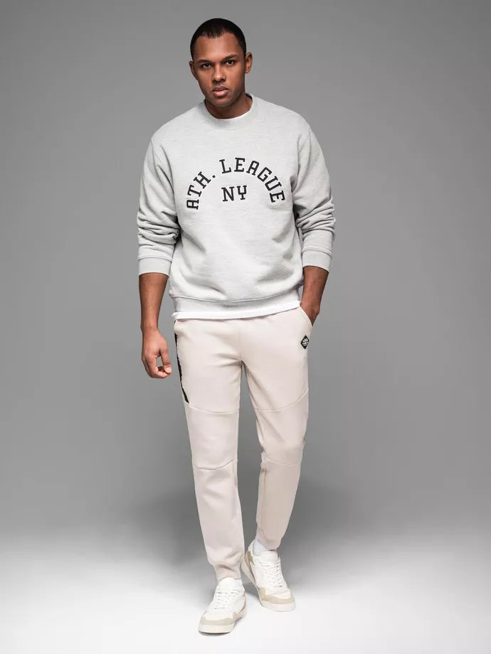 Sweatpants with a unique zipper on the leg will add a unique touch to any sports outfit. They beautifully combine comfort and style. The design is diversified by decorative elements in contrasting colors that effectively attract the eye. Sweatpants look best with unconventional accessories, such as printed T-shirts or stylish sneakers. Sports-style running pants, adjustable waist with drawstring, two front pockets with small decorative patterns. A contrasting zipper is sewn on the side of the leg.