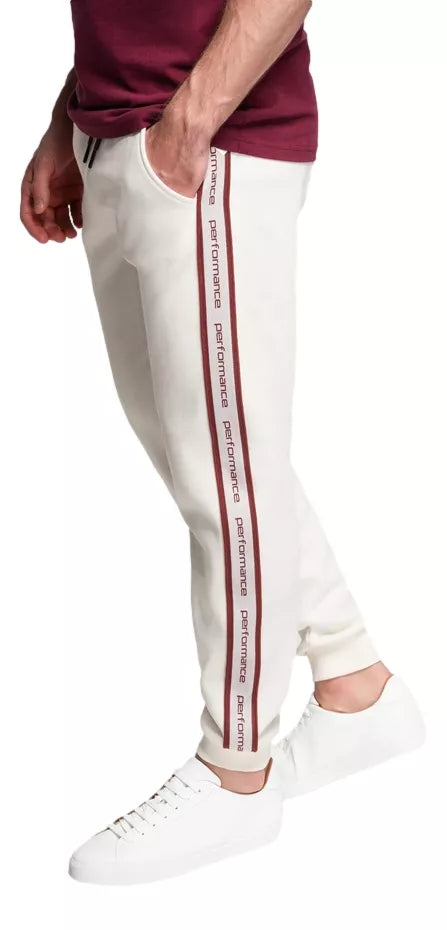 Men's sweatpants with an elastic waistband and additional drawstring. Side pockets and one back pocket.