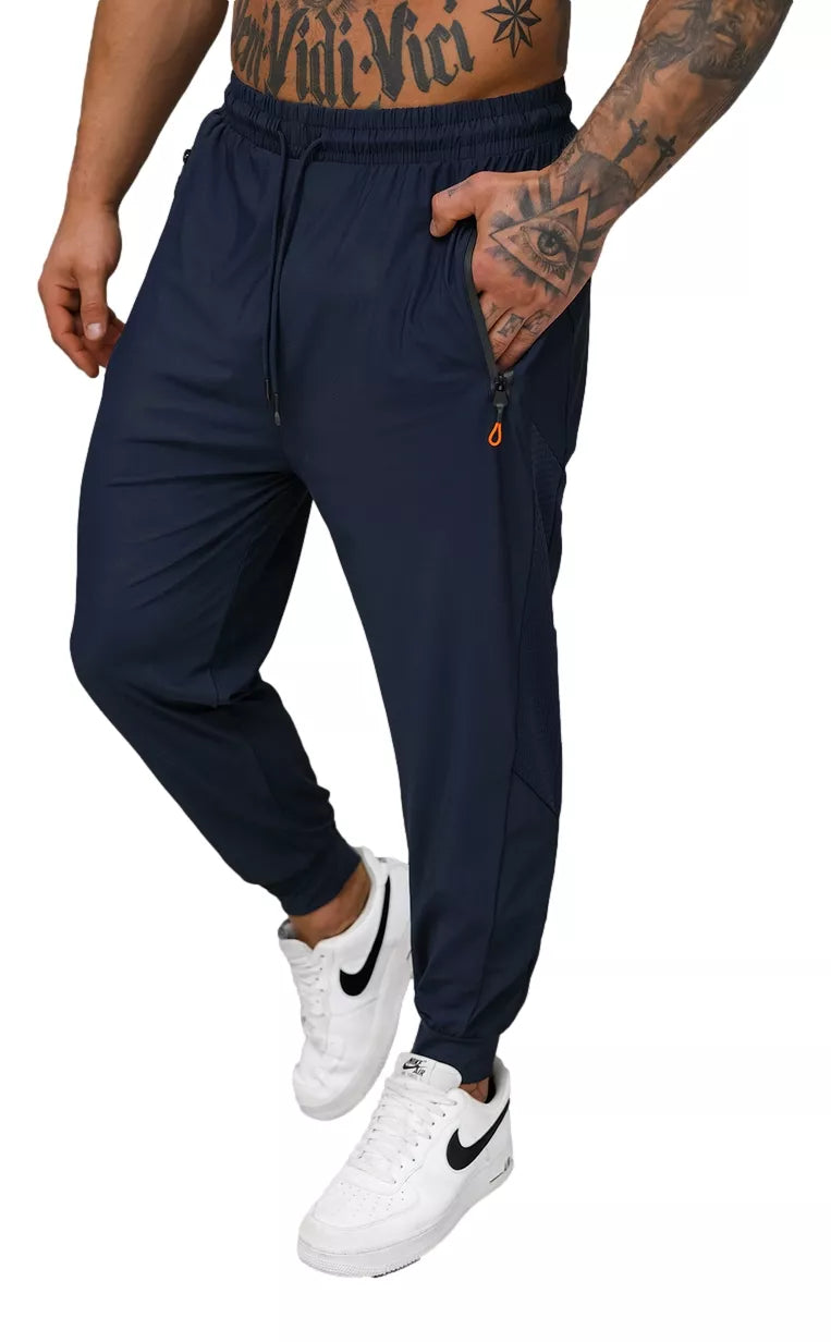 Looking for stylish and comfortable sweatpants? These men's sweatpants are a great choice for an active lifestyle or leisure time. Made of light and stretchy material, they do not restrict movement and fit perfectly to the body. An elastic waistband with an adjustable drawstring allows you to adjust the pants to your individual needs. Side pockets with a zipper ensure security - your phone or keys will always stay in their place. An interesting design element - textured inset details on the sides - gives modernity and uniqueness.