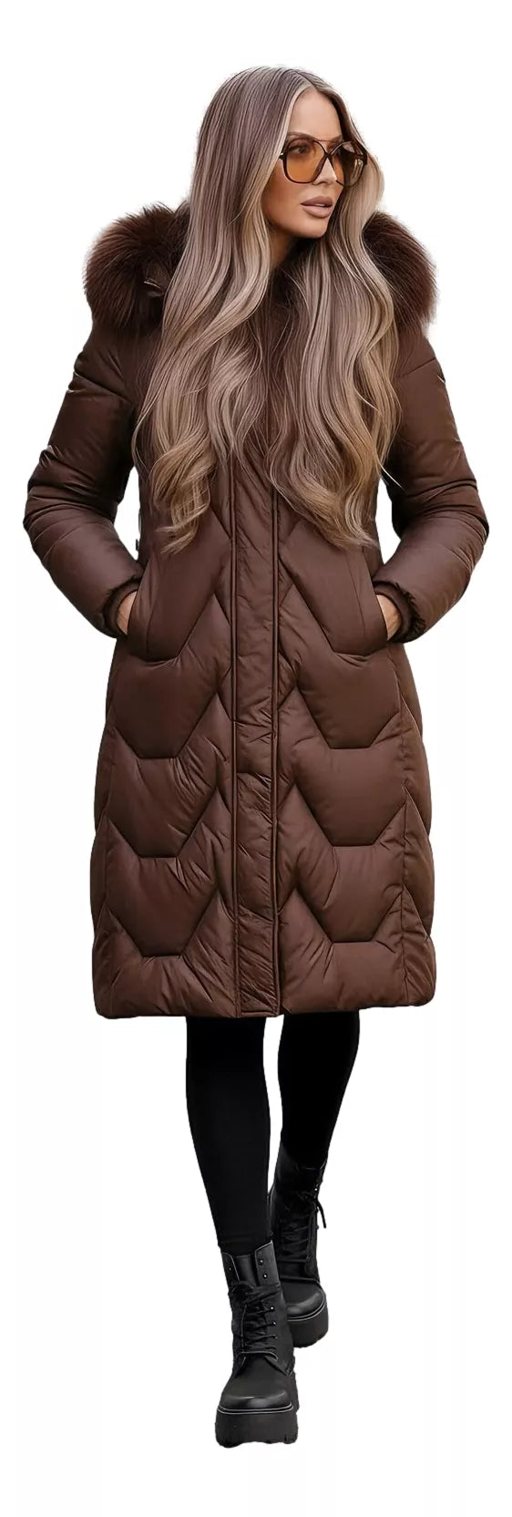 Gobtuvas su nuimama gausia dirbtinio kailiu apdaila suteikia jaukumo ir papildomą apsaugą nuo šalčio bei vėjo. Ilgas modelis efektyviai saugo nuo šalčio. Užsegama patogiu užtrauktuku, paslėptu po papildoma uždanga. Tinka kasdieniam dėvėjimui ir elegantiškesnėms progoms. Stilingas, šiltas ir praktiškas pasirinkimas moteriai, kuri nori atrodyti išskirtinai.